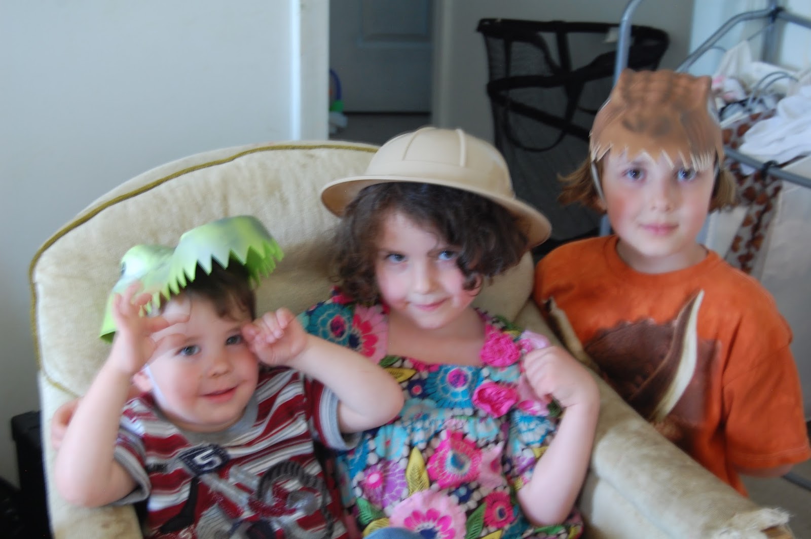 | Each guest got a goodie bag, binoculars, and a dino hat. |